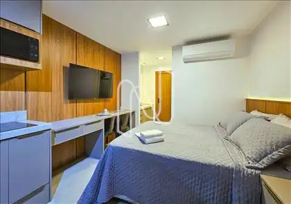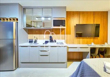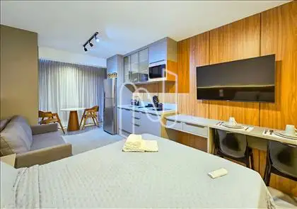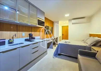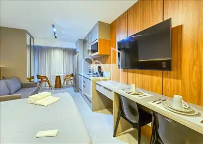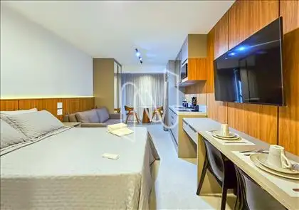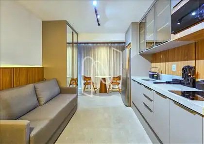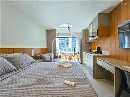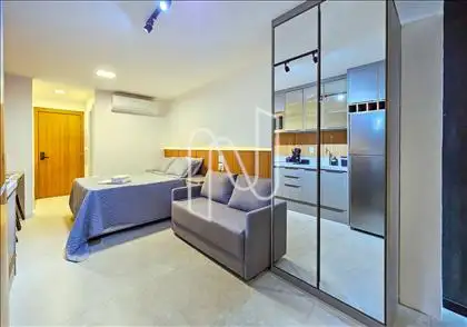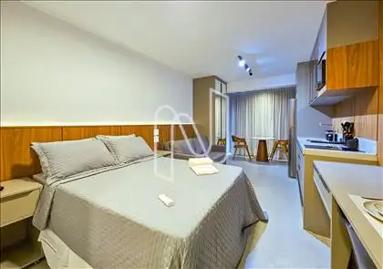 Studio mobiliado com 27m², ideal para quem valoriza design inteligente e conforto