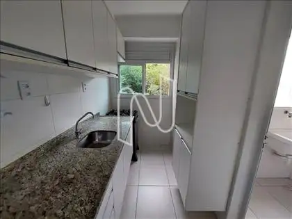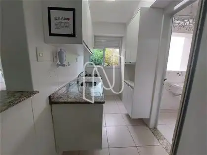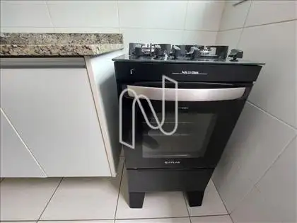 Cozinha com piso em cerâmica, armários, bancada em granito.