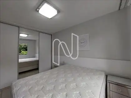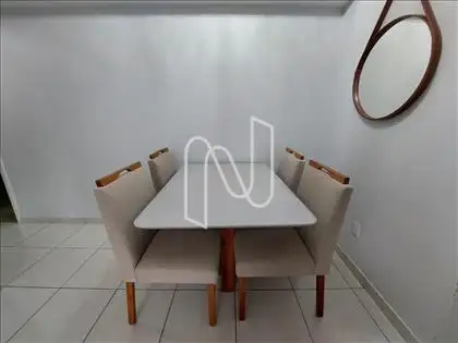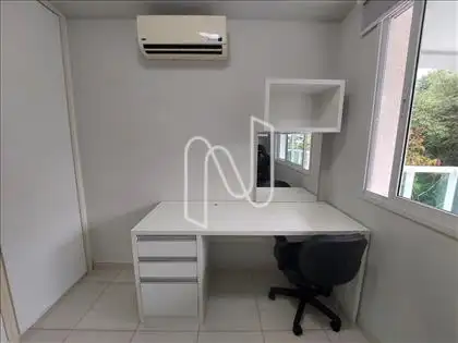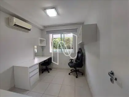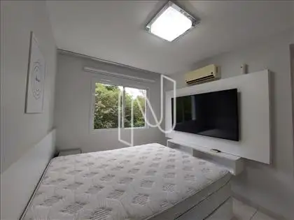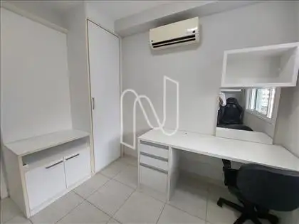 Sofá, cama, fogão, geladeira, mesa com cadeiras, televisão, cabeceira, rack, ar-condicionado. Os quadros, a cadeira gamer e a cadeira de escritório não farão parte da locação.