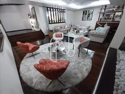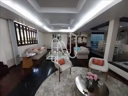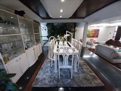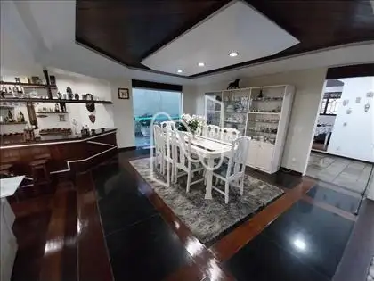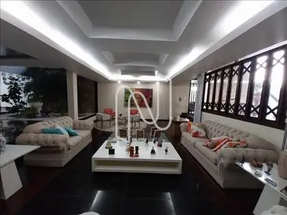 Belíssima Casa Alto Padrão de 2 Pavimentos com 1.347 m², composta de 5 Suítes, Gabinete, Armários embutidos, 3 salas, copa, cozinha, despensa, banheiro social, lavabo, área de serviço, jardim, 2 dependências de empregada completas, varandas, área livre, piscina e 5 garagens ( 2 cobertas e 3 descobertas ).